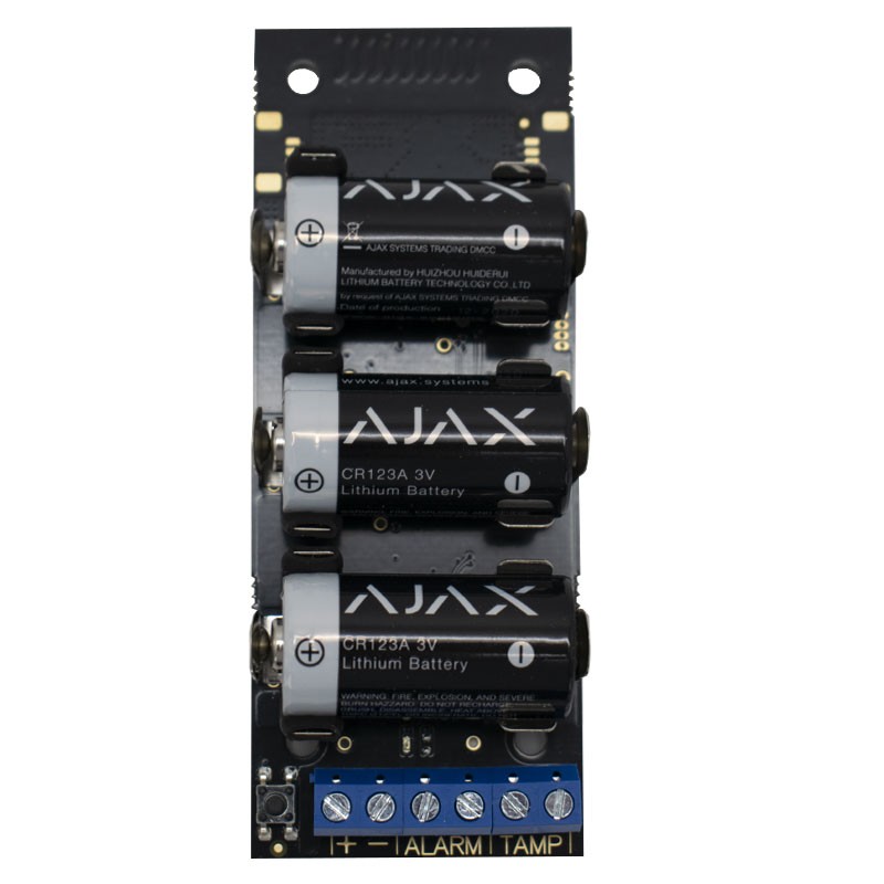 Trasmittente Wireless AJAX TRANSMITTER per connettere rilevatori di movimento per esterni, barriere a raggi infrarossi, rilevatori di livello e di gas, relè termici e qualsiasi dispositivo di terze parti collegabile via cavo al sistema di sicurezza Ajax.