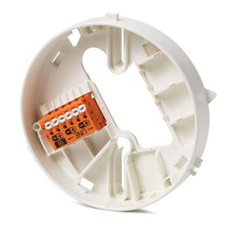 Base indirizzabile Siemens per dispositivi di allarme antincendio, realizzata in materiale sintetico resistente agli impatti e antigraffio. Morsettiere di connessione arancio senza viti. Spazio per ulteriori morsettiere aggiuntive, o per sezioni 0.5 mm2 o per sezione 2.5 mm2. Per rivelatori incendio con elaborazione del segnale indirizzabile. In caso di cavi a vista, diametro cavo ammissibile fino a 6 mm.