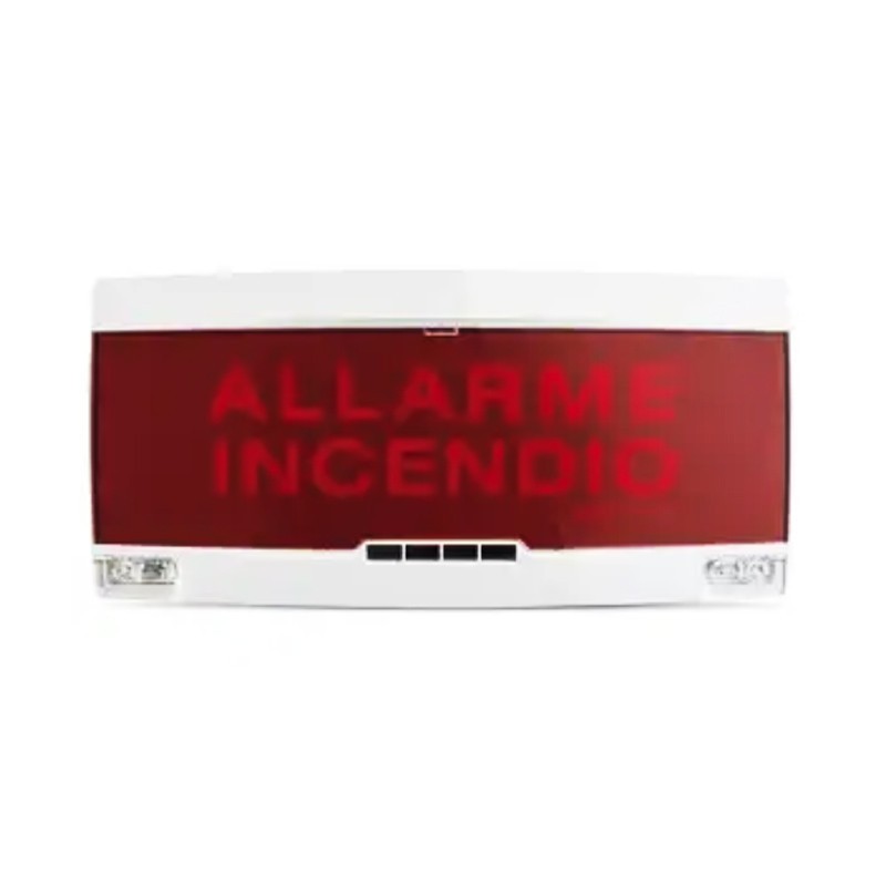 Pannello Ottico Acustico Antincendio Notifier indirizzato EN54-3 E EN54-23, Bianco opaco con FILM Rosso e scritta rossa.