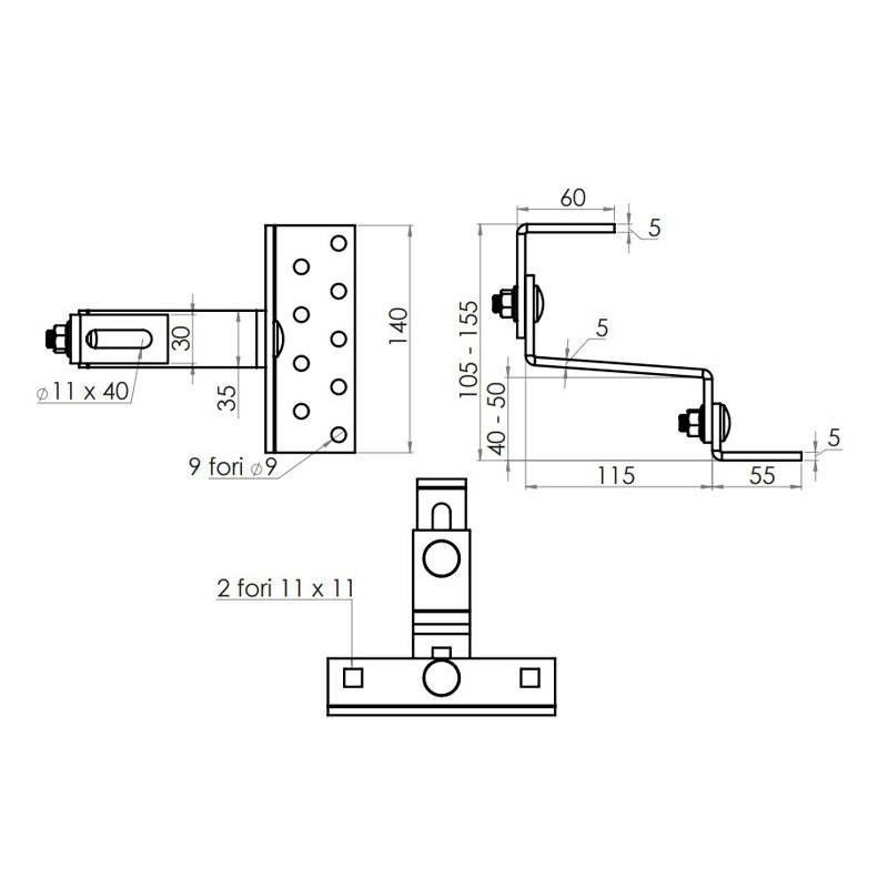 Staffa regolabile per tegole per fotovoltaico in alluminio STR0003