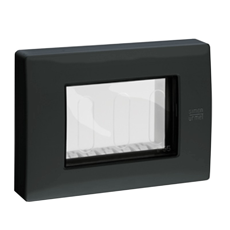 Calotta da parete porta moduli (frutti) Urmet Simon Nea 3 moduli, colore nero. Grado di protezione IP55. Al suo interno è possibile installare qualsiasi modulo (frutto) della serie Urmet Simon Nea.