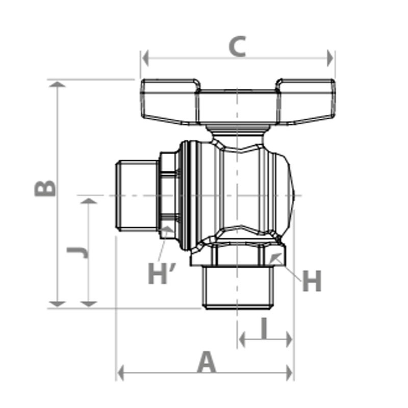 Valvola a sfera a squadra Giacomini R782G, con attacchi filettati maschio - maschio. Passaggio integrale.