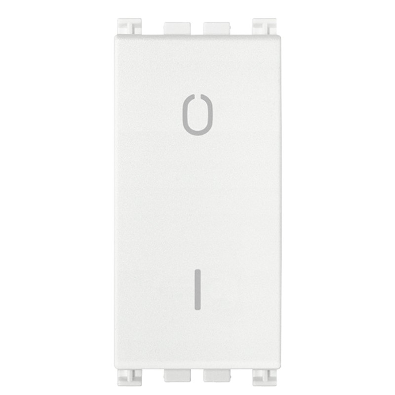 Interruttore Vimar Arke 2P 16 AX 250V tasto sostituibile, 1 modulo illuminabile, colore bianco. Max 200 W per lampade con alimentatore integrato (IEC 60669-1:2017).