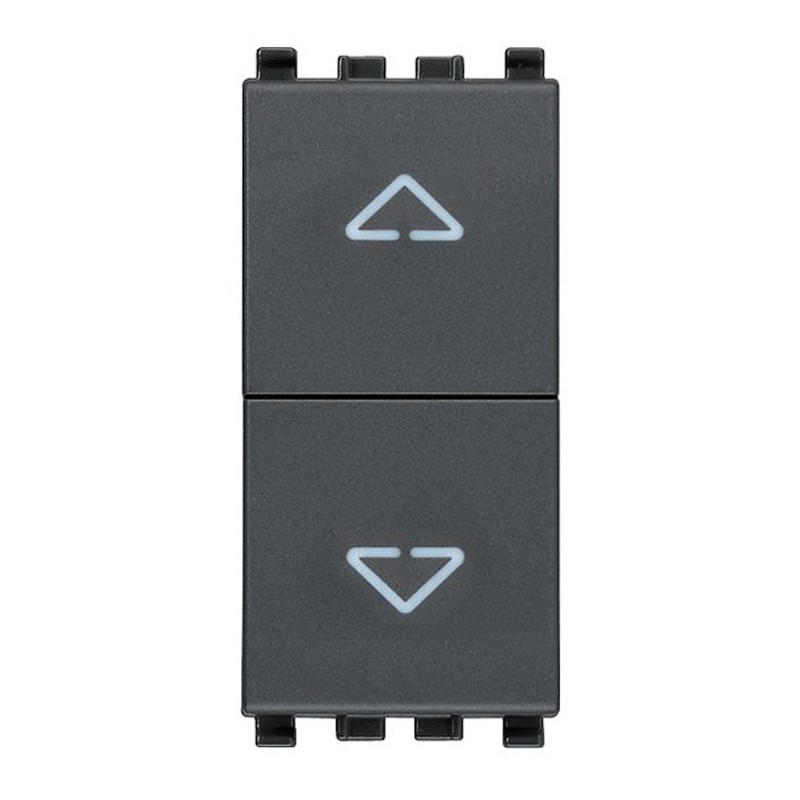 Vimar Eikon commutatore 2P 10 AX 250 V (6 morsetti), a due tasti, con frecce direzionali e posizione OFF centrale, 1 modulo colore grigio antracite. Max 100 W per lampade con alimentatore integrato.